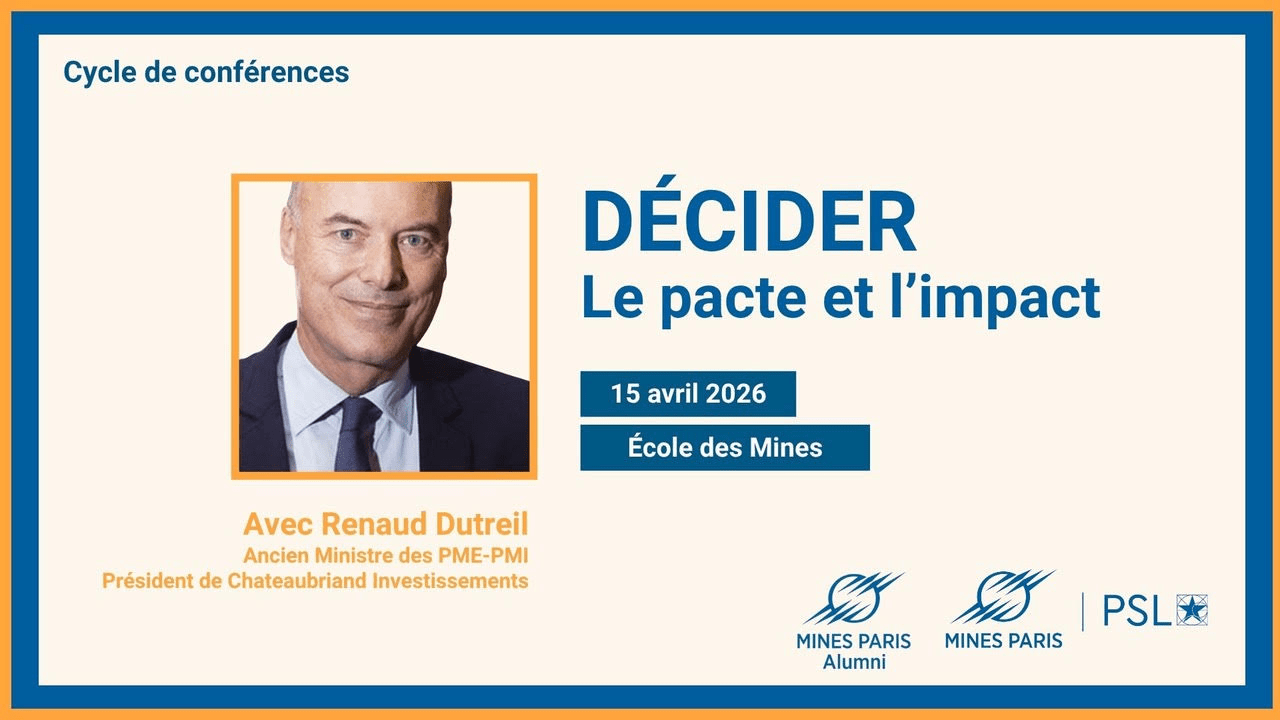 Le débat sera animé par des anciens élèves de Mines Paris et se poursuivra autour d’un cocktail, en présence de notre invité.